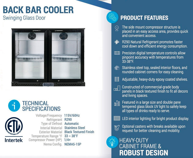 West Kitchen WBC250 35"W Back Bar Refrigerator with 2 Glass Doors