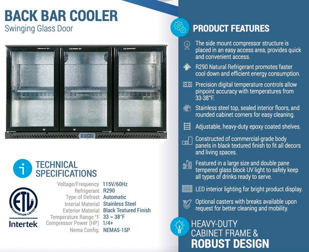 West Kitchen WBB-72G-HC 73"W Back Bar Refrigerator with 3 Glass Doors