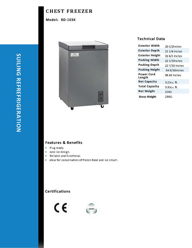 West Kitchen BD-103K 20"W Gray Chest Freezer or Refrigerator With Single Solid Lid