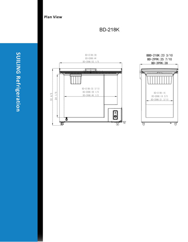 West Kitchen BD-218K 38"W Gray Chest Freezer or Refrigerator With Single Solid Lid