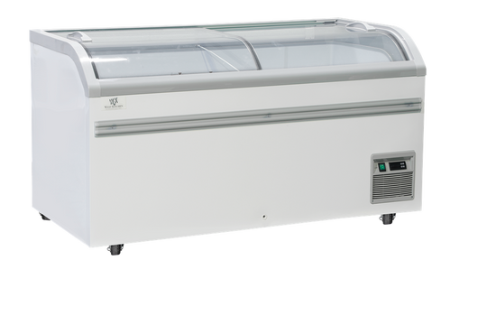 West Kitchen WD4-548 58"W White Curved Top Chest Freezer With 2 Glass Lids