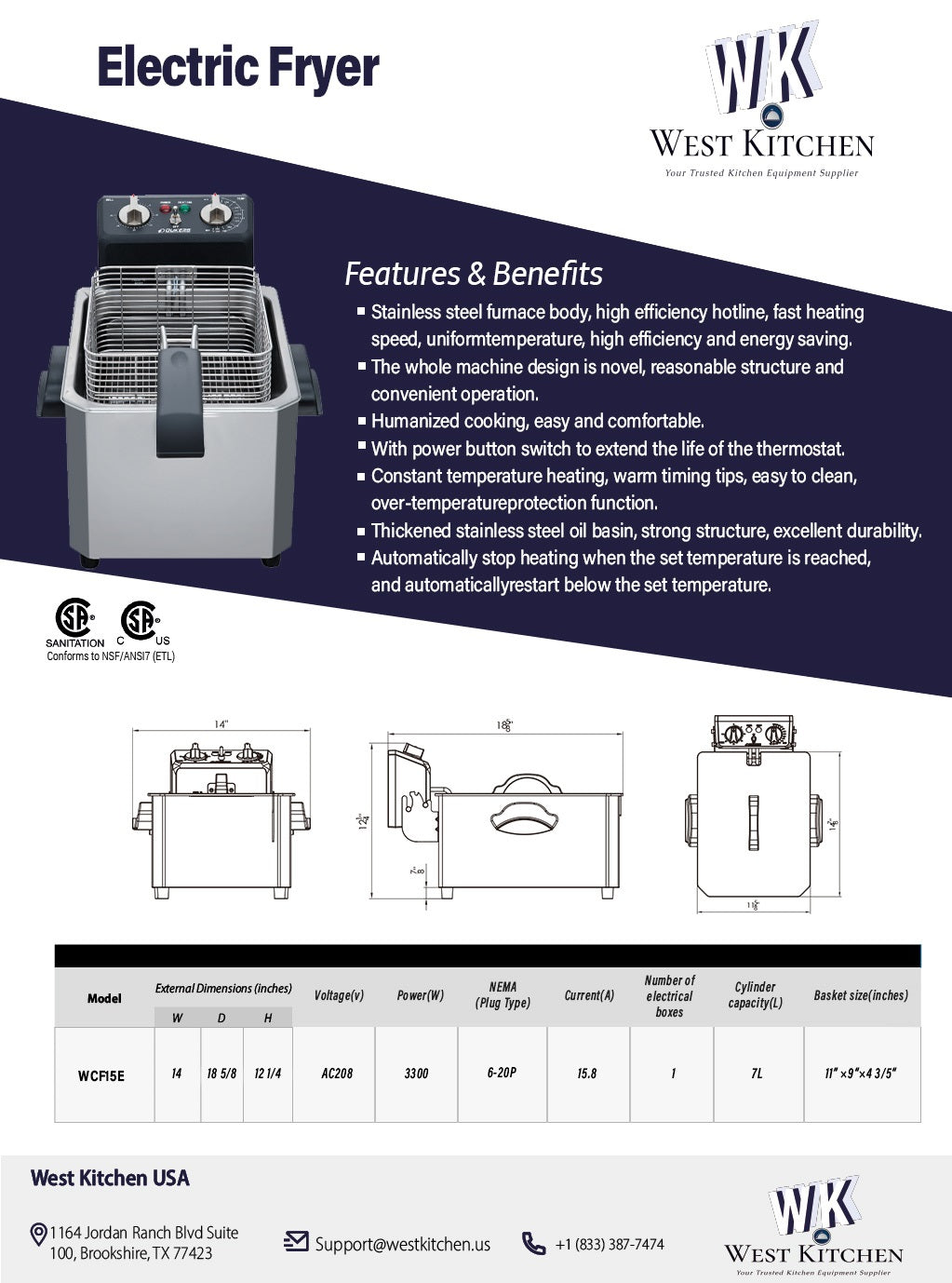 Elevate your frying experience with the West Kitchen WCF15E Electric Countertop Fryer. Immerse yourself in the world of culinary excellence, where capacity meets precision, and innovation transforms every dish into a masterpiece. Perfect for a variety of settings, this fryer ensures your creations are not just cooked but crafted with finesse and flavor.