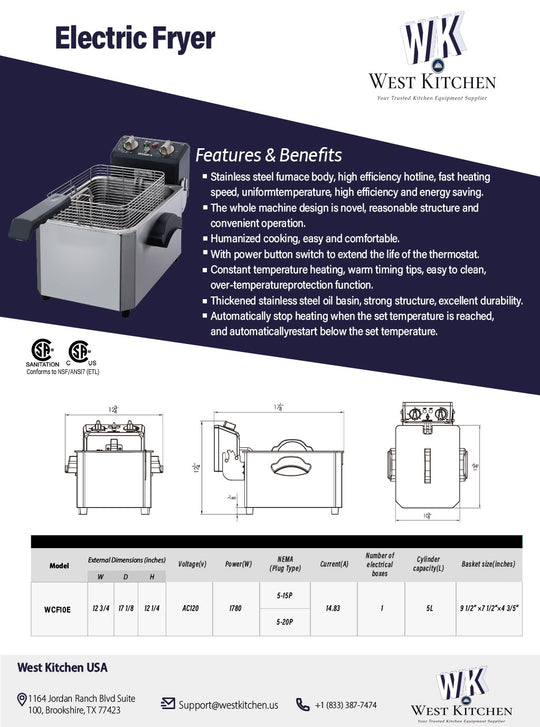 West Kitchen WCF10E 10lb. Single Basket 120V Electric Countertop Fryer