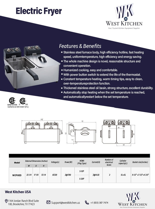 West Kitchen WCF10ED 20lb. Double Basket 120V Electric Countertop Fryer