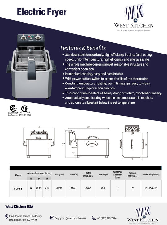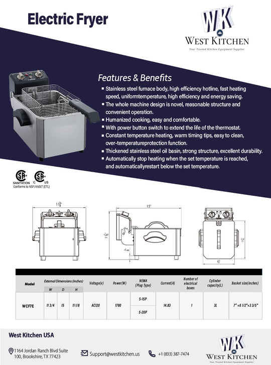 West Kitchen WCF7E 7lb. Single Basket 120V Electric Countertop Fryer