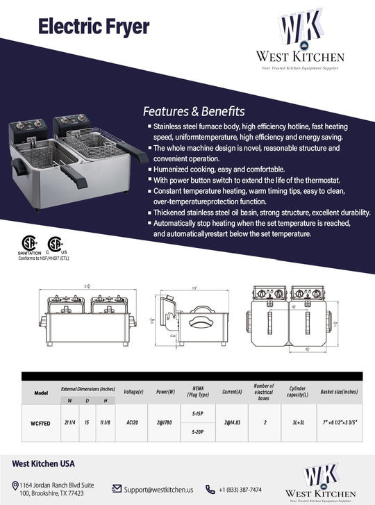 West Kitchen WCF7ED 14lb. Double Basket 120V Electric Countertop Fryer