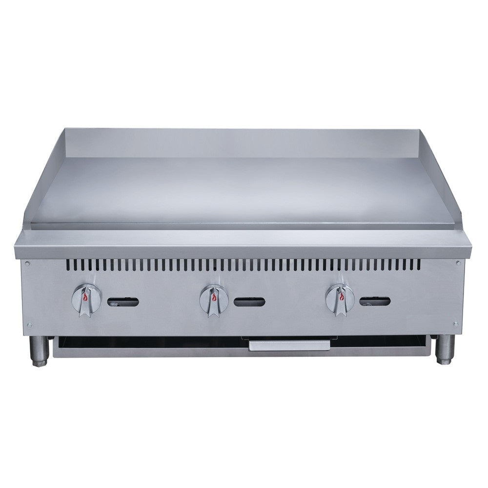 Unleash your culinary prowess with the West Kitchen WCGM36 36"W NG/LP Gas Manual Countertop Griddle, a powerhouse of precision and versatility. Crafted with the needs of professional chefs in mind, this countertop griddle combines the flexibility of natural gas (NG) or propane (LP) with robust features to redefine your cooking experience.