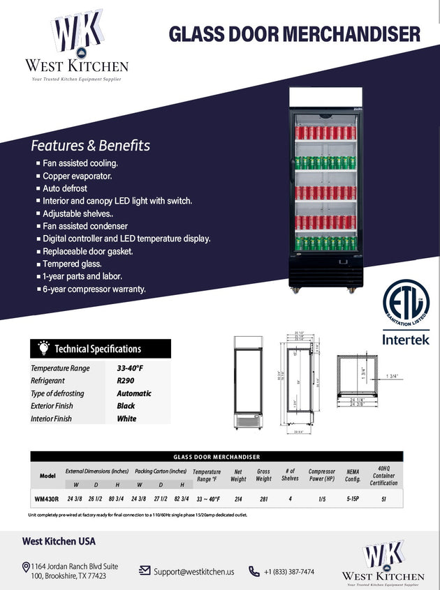 West Kitchen WTG-430 25"W 1 Door Swing Glass Merchandiser Refrigerator