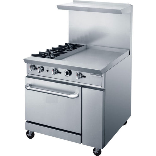 West Kitchen WCR36-2B24GM 36"W NG/LP Gas Oven Range with 2 Burners and 24" Manual Griddle