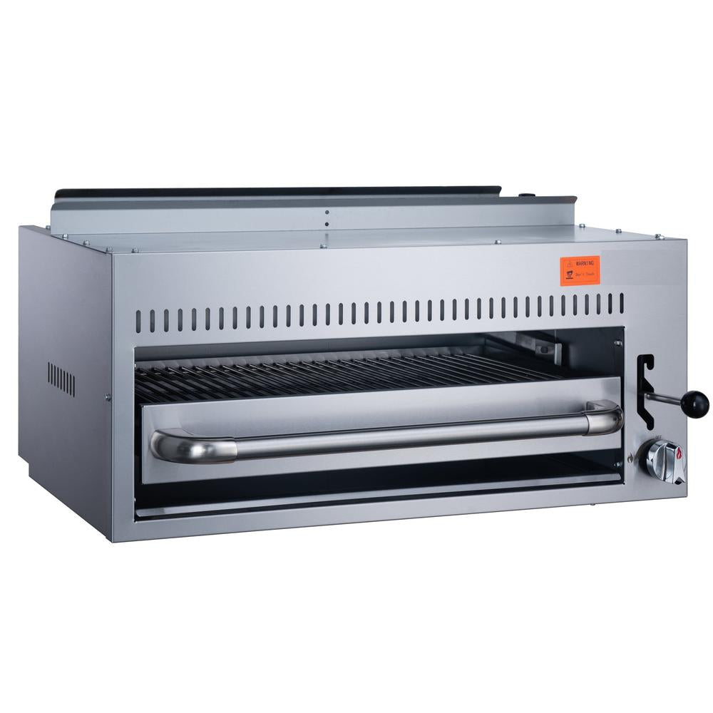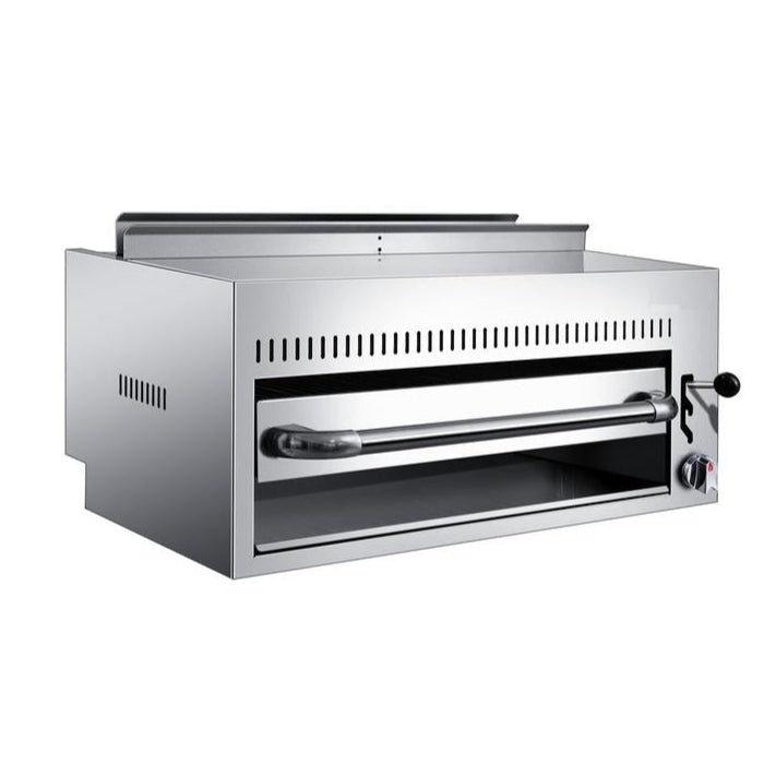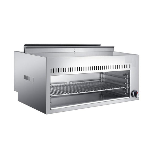 The West Kitchen WCSB36 Gas Salamander offers reliable and efficient melting, broiling, top-browning, grilling and toasting capabilities for commercial kitchens. designed for modern kitchens with premium features. All-stainless-steel front, sides, and top for durability and a contemporary look. Equipped with a standing pilot for instant ignition, it uses a powerful 35,000 BTU gas infrared burner, available in natural gas and adjustable for LP. The roll-out grid rack assembly ensures easy loading and unloading, while the large-capacity crumb and grease tray and removable broiler grid simplify cleaning. With three-position rack adjustments and flexible wall or range mount kits, this Salamander offers versatile and efficient cooking.
