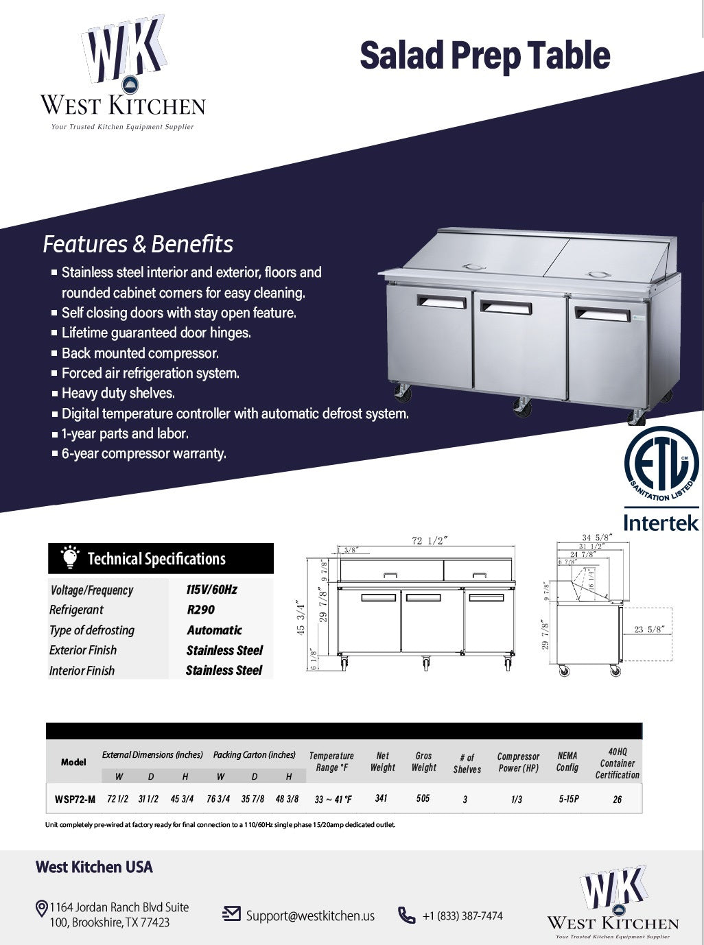 • Durable Stainless Steel Construction: The WSP72M is constructed with durability in mind, featuring brushed stainless steel both inside and out. This ensures longevity and ease of maintenance, providing a reliable solution for food storage and preparation needs.