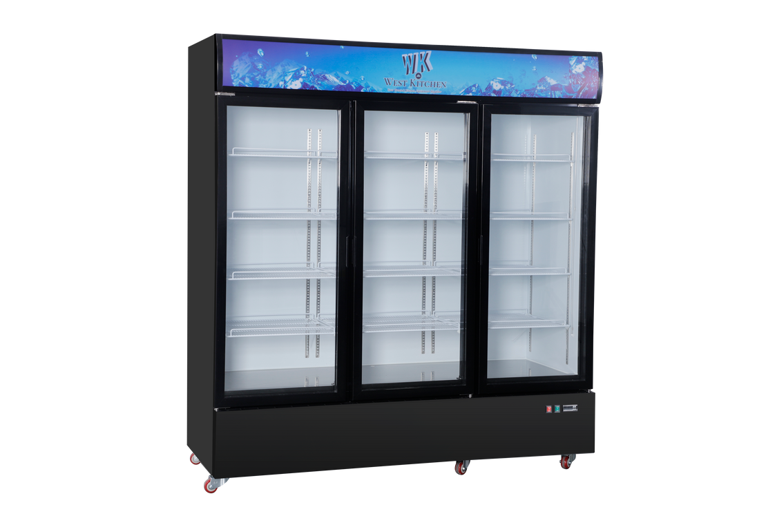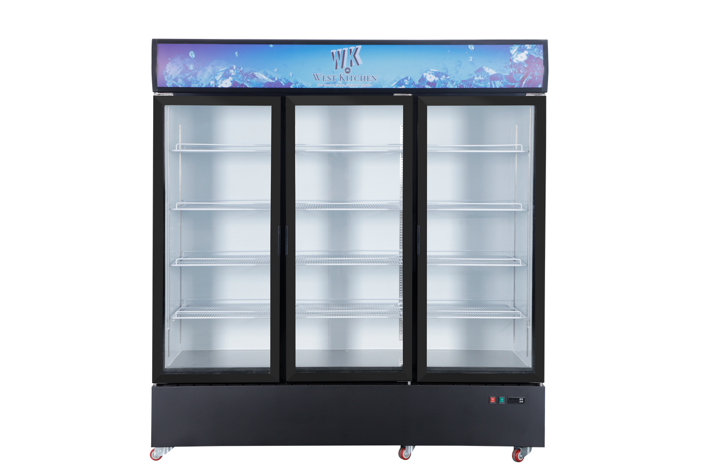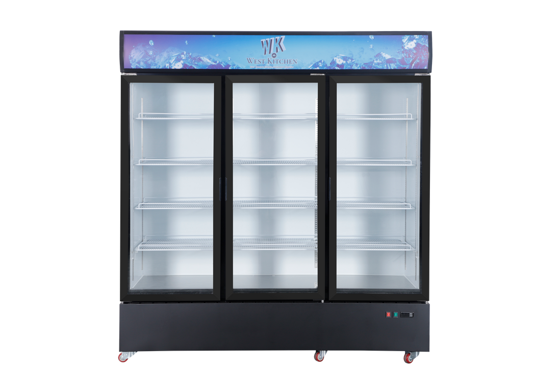 Elevate your refrigeration experience with the West Kitchen WLG-1480M3WP 74" 3 Door Swing Glass Merchandiser Refrigerator – where innovation meets elegance to redefine the way you store and display your products.