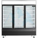 - Commercial three-door swing glass merchandiser refrigerator with a capacious 78" width.